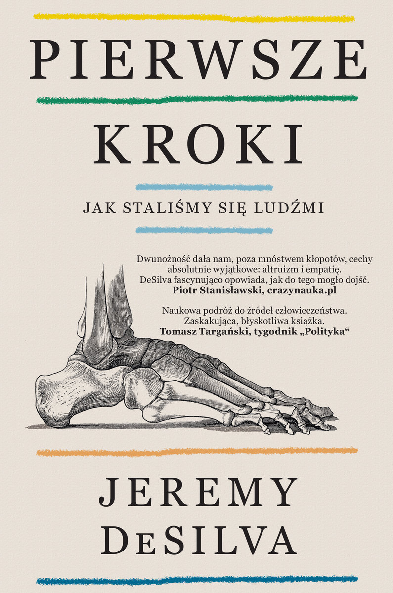 Chodzimy z podniesionym dumnie czołem, podążamy śladami innych, celebrujemy pierwsze kroki naszych dzieci. Tylko dlaczego i jak dokładnie zaczęliśmy chodzić na dwóch nogach? I jaką cenę przyszło nam za to zapłacić? W „Pierwszych krokach” paleoantropolog Jeremy DeSilva pokazuje, w jaki sposób chodzenie w pozycji wyprostowanej stało się początkiem pojawienia się wielu cech, które czynią nas ludźmi – od zdolności technologicznych, żądzy odkrywania i podróżowania, po wykształcenie mowy i uczuć wyższych jak współczucie, empatia czy altruizm.